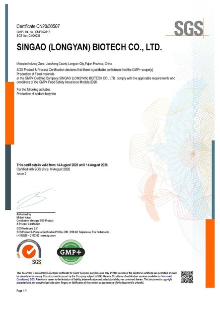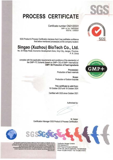 মান: GMP+সংখ্যা: CN21/20331প্রদানের তারিখ: 2021-10-19মেয়াদ শেষ হওয়ার তারিখ: 2024-10-19